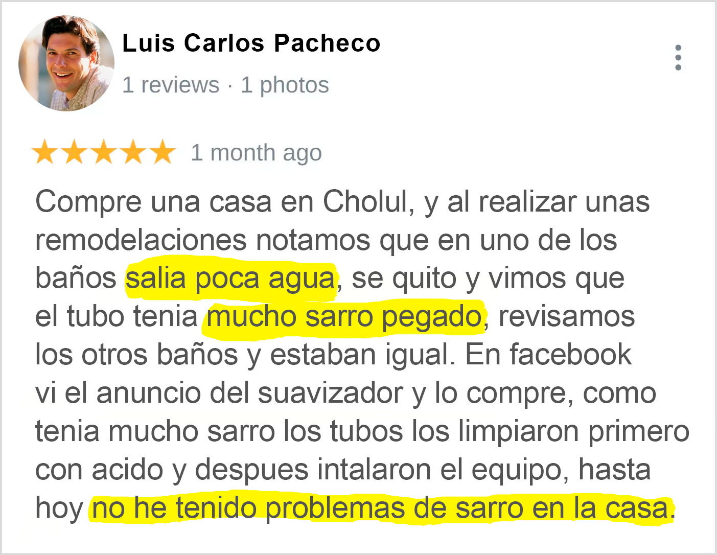 Detiene las incrustaciones de sarro en tuberías ayudando a que no se obstruya el interior logrando el correcto flujo de agua hacia los servicios de tu casa.